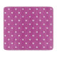 Seamless repeating pattern of small white polka dots evenly spaced across a vibrant magenta background.