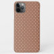 Seamless pattern of evenly spaced white polka dots on a solid medium brown or terracotta background.