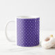 Seamless repeating pattern of evenly spaced small white polka dots on a solid medium purple background.
