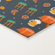 Seamless pattern with chess pieces, books, dice, trophies, and stars on a dark background. The vibrant design conveys a strategic, playful mood.