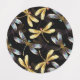 Seamless pattern with gold, jewelry, shiny dragonflies with detailed, sparkling wings on black background. Gold dragonfly.