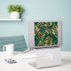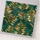 Seamless pattern of gold, jewelry, shiny fern branches and leaves on green, woodland, textured background. Golden fern.