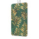 Seamless pattern of gold, jewelry, shiny fern branches and leaves on green, woodland, textured background. Golden fern.