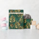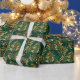 Seamless pattern of gold, jewelry, shiny fern branches and leaves on green, woodland, textured background. Golden fern.