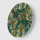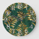 Seamless pattern of gold, jewelry, shiny fern branches and leaves on green, woodland, textured background. Golden fern.