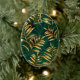 Seamless pattern of gold, jewelry, shiny fern branches and leaves on green, woodland, textured background. Golden fern.