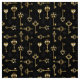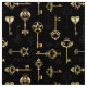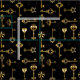 Seamless pattern of antique, gold and silhouette keys on black background.