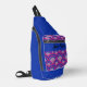 Personalized design with seamless rainbow pattern in the colors of bisexuality pride flag (pink, purple and blue;); on purple background, with customizable text template for your name or message