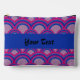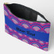 Personalized design with seamless rainbow pattern in the colors of bisexuality pride flag (pink, purple and blue;); on purple background, with customizable text template for your name or message