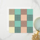 A seamless plaid pattern with alternating pastel squares in turquoise, cream, and beige. Each square is filled with a crisscross grid design, creating a vintage and orderly feel.