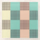 A seamless plaid pattern with alternating pastel squares in turquoise, cream, and beige. Each square is filled with a crisscross grid design, creating a vintage and orderly feel.