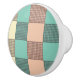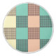 A seamless plaid pattern with alternating pastel squares in turquoise, cream, and beige. Each square is filled with a crisscross grid design, creating a vintage and orderly feel.