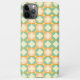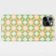 Seamless retro pattern with rounded squares in peach, teal, and cream hues, outlined in orange. Mid-century modern style, conveying a vintage, playful tone.