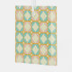 Seamless retro pattern with rounded squares in peach, teal, and cream hues, outlined in orange. Mid-century modern style, conveying a vintage, playful tone.