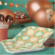 Seamless retro pattern with rounded squares in peach, teal, and cream hues, outlined in orange. Mid-century modern style, conveying a vintage, playful tone.