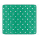 Seamless pattern of small, evenly spaced white polka dots on a solid teal or emerald green background.