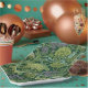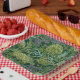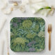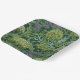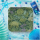 Seamless William Morris style wallpaper pattern featuring dense green foliage and large, rounded flowers in shades of lime green, off-white, and muted lavender against a dark emerald background.