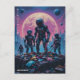 Search Squad Ω drops you straight onto a drifting junk planet where retro-futuristic robots sift through neon debris under a rain-soaked sky. Tattered space suits, glitch-lit skylines, and a battered mix of colour and chaos give this piece the look of a lost Japanese sci-fi poster from an alternate 1980s.