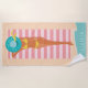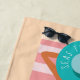 Das niedliche und lustige Beachbeauty-Babe, das auf einem rosa gestreiften Handtuchsonnenbad am Sandstrand neben dem Wasser ruht. "Seas The Day" ist einzigartig um die Sonnenmütze der Strandbabe eingegliedert. Sie können diese Phrase/Text in das ändern, was Sie wollen. Personalisieren Sie Ihren Namen am Ende des Handtuches. Kunstwerk von Moodthologie.