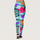 Diese Leggings haben eine Meereslandschaft mit aquamarinen Algen, Orange, Rosa und lila Fischen.