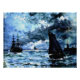 "Seascape, Night Effect" (auch bekannt als "Marine, Effet de Nuit") ist ein weniger bekanntes Werk, das die geheimnisvolle und atmosphärische Schönheit des Meeres in der Nacht feststellt. Dieses Stück zeigt eine frühe Erkundung des Lichts und seiner Auswirkungen, auch bei geringer Lichtverhältnisse. Im Gemälde dominieren die dunklen Gewässer des Meeres, wobei das schwache Licht des Mondes oder das Fernlicht die Wellen subtil erhellen. Der Himmel ist von Dunkelheit umsäumt, und nur ein paar Lichthupen brechen durch die Wolken, was die unheimliche und ruhige Stimmung der Szene noch verstärkt. Die Pinselstriche sind gedämpft und spiegeln die Ruhe und Stille der Nacht wider. "Seascape, Night Effect" demonstriert ein Interesse daran, die vorübergehenden Auswirkungen des Lichts auf die Landschaft zu erfassen, selbst unter schwierigen Bedingungen wie der Nachtzeit.