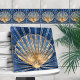 Seashell Art Déco - Blauer Marmor und Gold Fliese
