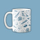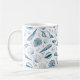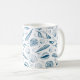 Seashell, Beach-Coffee-Tasse. Blaue Muscheln auf weißem Hintergrund. Matching-Elemente verfügbar. Originale Kunst von Künstlern eigene Illustrationen. Bitte nutzen Sie den unten stehenden Button für die Nachricht, um weitere Anpassungen und spezielle Anfragen zu erhalten. © Zoe Chapman Design