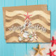 Muscheln und ein roter Sternenfisch bilden einen Weihnachtsbaum im Sand auf diesen flachen, nicht fotografischen Karten und haben Ihren personalisierten Gruß und Namen auf der Rückseite. Wählen Sie Matte für schwerstes Papier und High Definition für beste Druckqualität.