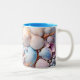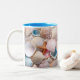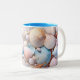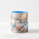 Seashell Coffee Tasse mit Blau-, Rosa- und Orangetönen.