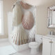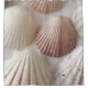 Hier ist ein seashell-Thema Duschvorhang Badezimmer mit Dusche mit schönen natürlichen Skallop-Muscheln in schönen Erdtönen, die neutral für jedes Farbschema. Als Naturstrand konzipiert, bietet es sich als Lebensbild an, das sich für die Zuhause oder Florida-Dekoration eignet.