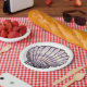 Ein schönes Beispiel für eine Muschel Dieses Design sieht auf diesen Paper-Tellern wirklich effektiv aus