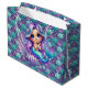 Eine farbenfrohe große Geschenktasche mit einer Niedlichen Lila Meerjungfrau und farbenfrohen Muscheln für eine kleine Mädchen Geburtstagsparty