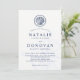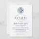 Spezielle Hochzeitseinladungen im nautischen Stil mit einem dunklen Marinespiel und weißen Farbtönen. Auf der Vorderseite der Einladung befindet sich eine ansprechende Illustration, gefolgt von Ihrer Hochzeitstagsinformation. Im Hintergrund verblasst ist eine Compass Wind Rose In einem Vintagen nautischen Stil. Auf der Rückseite der Einladung befindet sich ein dunkel marinebasiertes und weiß gestreiftes Muster, das das Aussehen und das Gefühl ergänzt. Sie können alle Details wie Hintergrundfarben, Schriftart-Größe, Schriftart-Farben und mehr über die Anpassungsfunktion ändern. Außerdem können Sie mit den vielen einzigartigen dickeren Papiersorten und Schnitten experimentieren. Viel Spaß, kreativ zu sein und es zu einem eigenen zu machen.