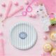 Genießen Sie unsere nautisch blauen Muschelmalereien mit blau gestreiften Tellern für jedes Party.