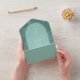 Eine Kunstdarstellung von Palmen-Blätter über Aquarellhintergrund mit weißem Text und Muscheldesign über Aquarellbogen mit Bräunungsrahmen. Draußen ist pink mit Rücksendeadresse und Palmblattbild auf Klappe. UAwg enthält qr-Code.