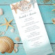 Dieses nautische Veranstaltungsmenü, das sich mit meiner Hochzeitskollektion in der Sternensee abstimmt, enthält die Namen der Braut und des Bräutigams in graublau geschriebener Schrift, das Hochzeitdatum, Ihre Vorspeise, Vorspeisen und Desserts, die von handbemalten Seestern, Muscheln und herrlichen Meereswellen hervorgehoben werden. Die Rückseite ist ein fester Hafen blau. Ideal für Hochzeiten im Wasser, Strand, Ziel und Sommer. Einfach mit der Designvorlage personalisieren - einfach den Beispieltext durch eigene Menüinformationen ersetzen. Wenn Sie feststellen, dass Sie die Größe des Schriftartes anpassen oder etwas neu positionieren müssen, klicken Sie auf "Anpassen".