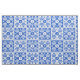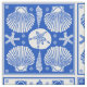 Dieser hübsche, einzigartige Seegewebeentwurf hat ein wiederholendes und wechselndes quadratischer Block-/Schachbretmuster, das mit den blauen und weißen Strand-Muschel-Silhouetten gefüllt wird. Die mit Ziegeln gedeckten Muscheln, die Starfish, die Sanddollar und die Spiralen sind für Ihre Strandhaus-Handwerksprojekte oder jeden Meer- oder Küstenthemasommerdekor perfekt.