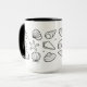 Eine Tasse mit einem Design von Joabt. Das Design zeigt Muscheln, die in einem Muster angeordnet sind.