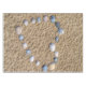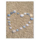 Ein Herz ausgebreitet in den weißen, beige und grauen Seashells im goldenen Sand eines Strandes in der Sonne.