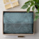 Wasserstrand, aquamarine Muscheln aus Metall, die decoutentes Papiertaschentuch entwerfen. Küsten schöne elegante Geschenkpackung. Bildrecht Marg Seregelyi Fotografie.