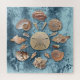 Das ist eine Muschelmandala auf blauem Korallenboden.