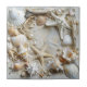 Hübsche Starfish, Muscheln, Treibholz und weiße Perlen auf weichem, weißem Sand.