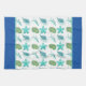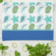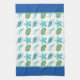 Dieses Küchentuch ist auf einem weißen Handtuch ausgestellt und zeigt Muscheln in den Farben Blau und Grün. Tief blauer Rand mit dünner Wasserlinie an den unteren Rändern. Passen Sie dieses Objekt an oder kaufen Sie es wie gezeigt.