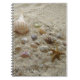 Eine Vielzahl von bunten kleinen Muscheln sind in den Strand Sand auf diesem Notebook eingebettet. Es eignet sich hervorragend zum Mitschreiben von Notizen, zum Schreiben von Zeitschriften, Planern, Tagebuch oder Schulheft.