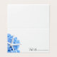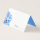 Stehende Platzkarten / Begleitkarten mit blauen Blumen und Sternendesign. Weiß, gefaltete Karten sind leer, und der Name des Gastes muss auf jedem Blatt handgeschrieben sein. Benutzen Sie den Text "Tischnummer", um die Gäste zu ihren Tischen zu begleiten. Entfernen Sie den zu verwendenden Text für Platzkarten. Im Inneren ist das Innere massiv blau.
