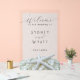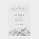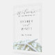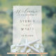 Garten am Meer, weiße Hochzeitsempfang am Strand. Weißer Seestern/Seestern und weißer Blütenriss (Hydrangea-Blume). Ein undurchsichtiger, mattierter Look macht den dunkelgrauen Text auffällig und verlasse die Kanten klar. Zwei Seesterne schmücken die Oberseite. Moderne Schriften und gedruckte Schriftart werden verwendet und beinhalten "Willkommen" an der Spitze, dann "zur Hochzeit von" mit Namen in Großbuchstaben gedruckten Schriftart. Der Hochzeitstag kann auch am Ende des Tages hinzugefügt werden. Große Schilder, wie dieses hier, werden sich biegen, also planen Sie, es in irgendeiner Weise zum Stand zu halten, für eine gute Maßnahme. Oder ändern Sie die Größe nach Bedarf. Kleinere Schilder stehen allein (in einem Halter). Dieses Blumendesign am Strand passt zu jeder Größe. Lesen Sie mehr über das Produkt in der Beschreibung.