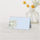 Seaside Garden Seestern und Hydrangea gefaltete Platzkarten. Hellblaue Farbe mit einem Seestern, der auf der links Seite in ein weißes Hydrangea-Blume-Design geklemmt ist. Name, Name und Tischnummer (als Begleitkarte zu verwenden) und Falten, um auf einem Tisch oder Platz zu stehen.