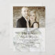 Weiße Blumen Hochzeit Einladung mit Foto-Vorlage am oberen und Seestern mit Hydrangea-Design. Einfach mit einem Absatz anpassen, um so viel Text wie nötig hinzuzufügen, einschließlich der Position des Empfangs oder sogar des UAWG. Neutral cremefarben mit schwarzem Text verleihen dieser Einladung eine neutrale Palette und ist das perfekte Design für eine Sommerhochzeit am Meer. Die Rückseite ist fest, cremefarben.