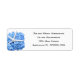 Blaue Hydrangea und sternweiße Adressetiketten mit schwarzem Text. Fügen Sie drei oder vier Zeilen Text für die Adresse hinzu. Eine hellblaue Blume mit weißem Stern schmückt den Rand.