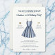 Set a breezy and stylish tone for your next celebration with this elegant nautical party invitation. The centerpiece is a beautifully illustrated sleeveless dress featuring classic blue-and-white vertical stripes, instantly creating a relaxed, coastal vibe. Flanked by a rustic golden compass on one side and a trio of subtle stars on the other, the clean layout balances traditional maritime charm with modern simplicity. With crisp typography resting against a clean white background, this design effortlessly captures the feeling of a sun-drenched afternoon by the water, making it the perfect way to gather your friends and family for a memorable seaside event.